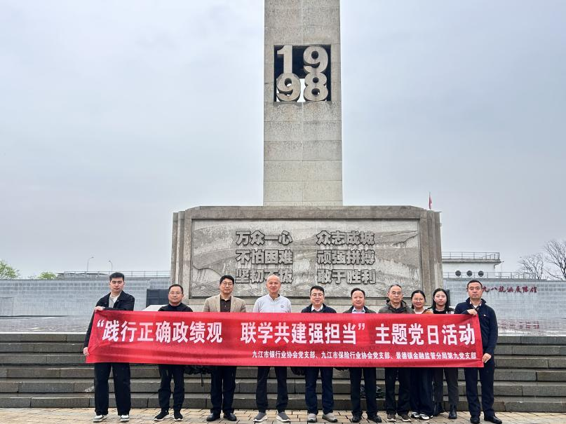 近日,九江市银行业协会党支部、九江市保险行业协会党支部与景德镇金融监管分局第九党支部在九江市九八抗洪展陈馆联合开展“践行正确政绩观 联学共建强担当”主题党日活动。全体党员参观了九八抗洪展陈馆,深刻感悟“九八抗洪精神”,一致表示,要将“九八抗洪精神”转化为推动工作的强大动力,进一步树牢正确政绩观,推动协会工作高质量发展。