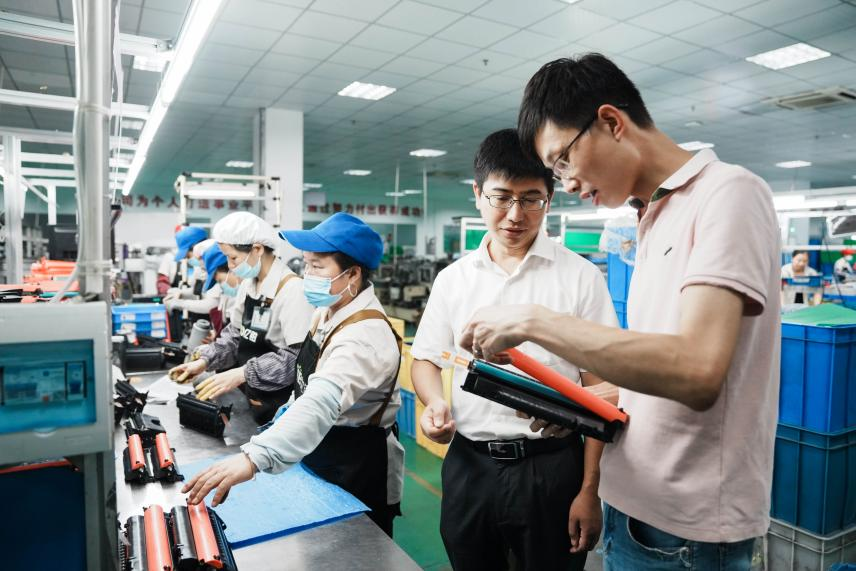 江西中行工作人员走访调研江西新余电子科技企业金融需求。