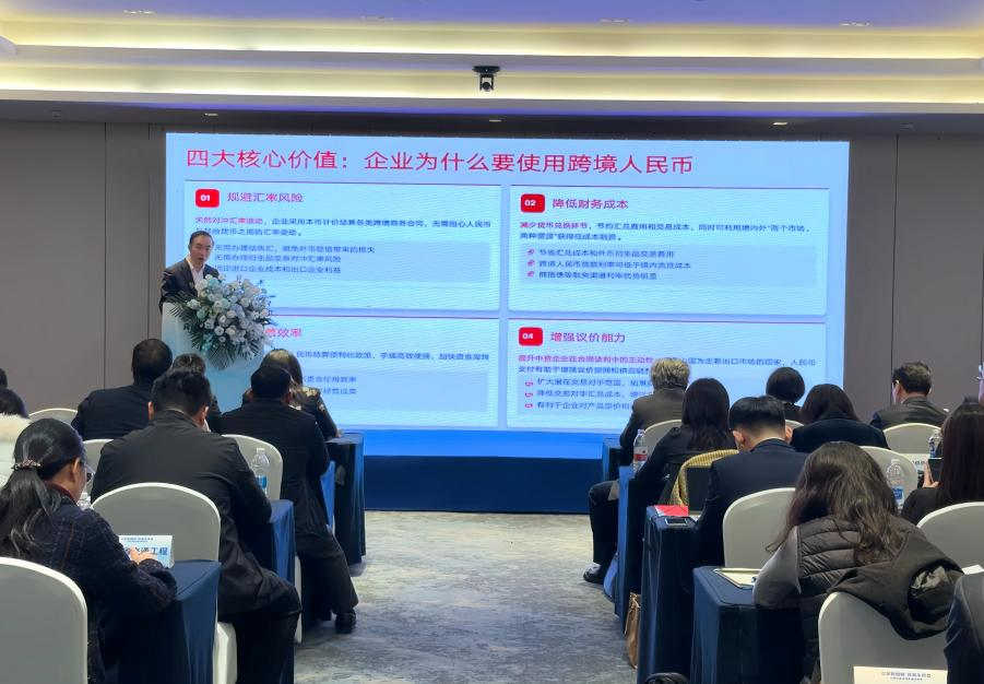 在企业推介环节,中国银行江西省分行专题推介了“出海”金融产品及方案。围绕企业“出海”中面临的优化资源配置、提升本地化运营能力、保障境外资产安全等核心诉求,针对进出口贸易等五类客群,系统介绍了跨境结算、贸易融资、全球现金管理、汇率避险、项目融资、境外发债等量身定制的跨境金融综合服务方案,重点推介了人民币国际化在助力赣企拓展东南亚市场中的独特优势,现场反响热烈。