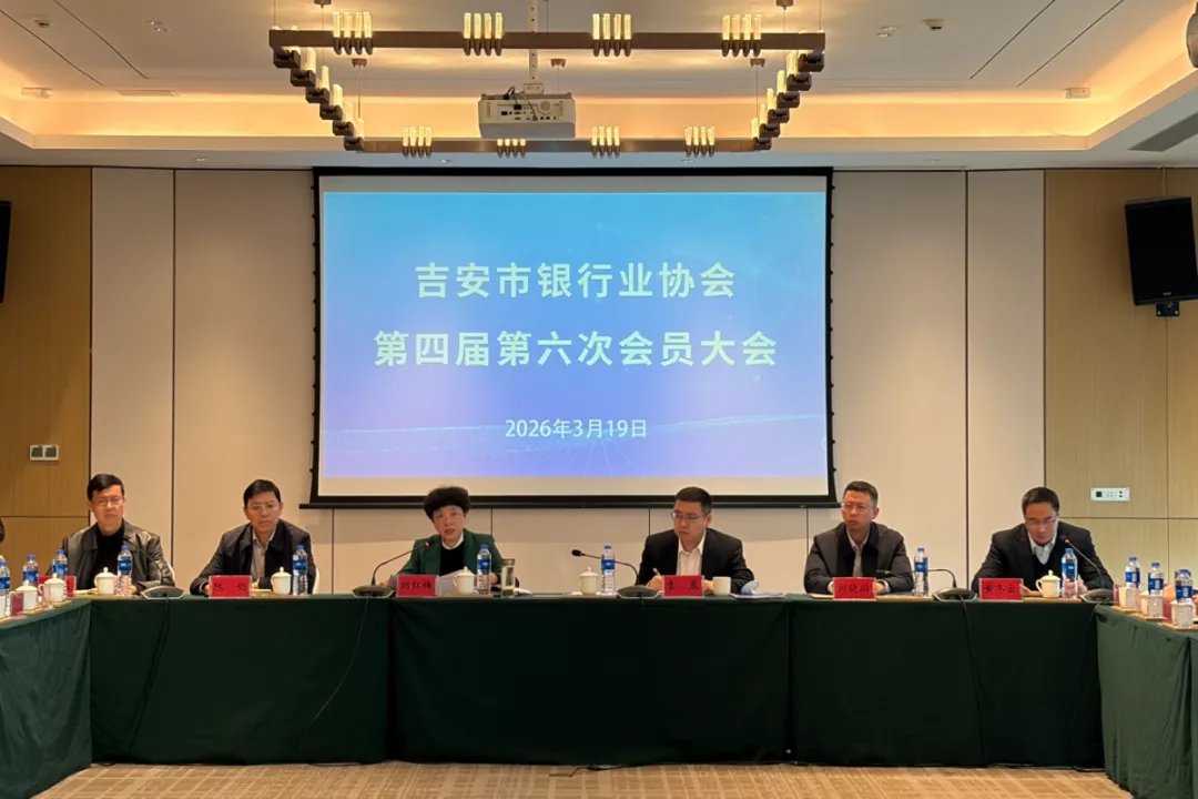 2026年3月19日上午,吉安市银行业协会顺利召开第四届第六次会员大会。会议由协会秘书长黄冬云主持,全市38家会员单位代表参会。吉安金融监管分局党委书记、局长刘红梅出席会议并讲话。